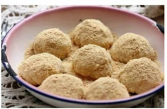 漳州的乡村人家要舂“交冬糍”庆祝好收成。糯米蒸熟后倒入石臼,舂得韧韧的,黏黏的,揪成乒乓球大小,细细地揉成团;花生米炒得香香的,磨得细细的,与白糖拌在一起。做好的小糍粑滚以白糖花生粉,摆放在大海碗里。食用时用筷子一口气串上几粒,就像拨浪鼓,所以也叫“拨浪糍”。