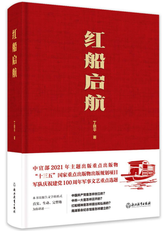 推荐理由:《红船启航》共分上下两卷,从历史讲到今天。上卷“红船劈波行”以“从红楼到红船”的历史脉络为主线,翔实生动地讲述了陈独秀、李大钊等党的主要创始人开天辟地的建党历程和中共一大召开的曲折故事;下卷“精神聚人心”以南湖革命纪念馆建设发展史为主题,深入挖掘记录了南湖儿女保护、建设和用好红色资源,赓续红色血脉,弘扬红船精神,描绘共同富裕新画卷的感人故事。该书由著名军旅作家丁晓平创作,入选中宣部2021年主题出版重点出版物、“十三五”国家重点出版物出版规划项目、军队庆祝建党100周年军事文艺重点选题。