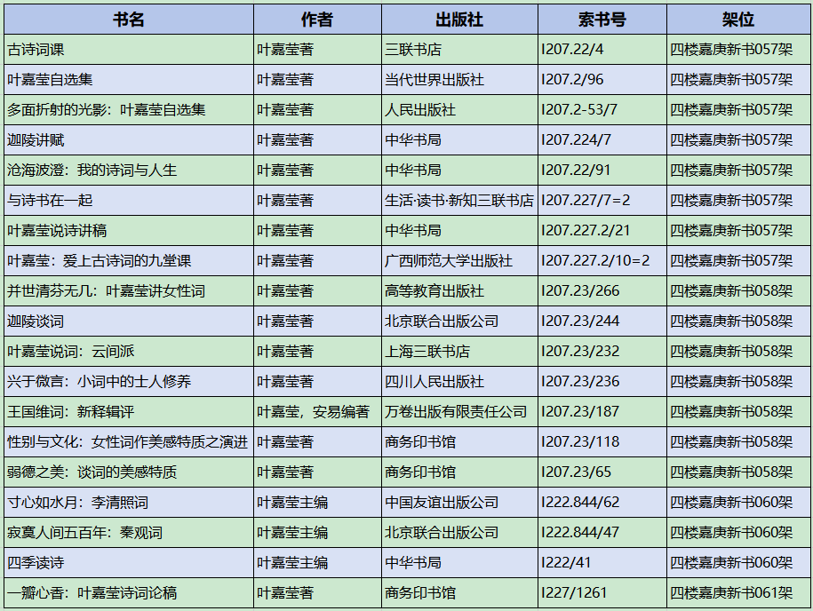 “叶嘉莹作品”馆藏书目推荐