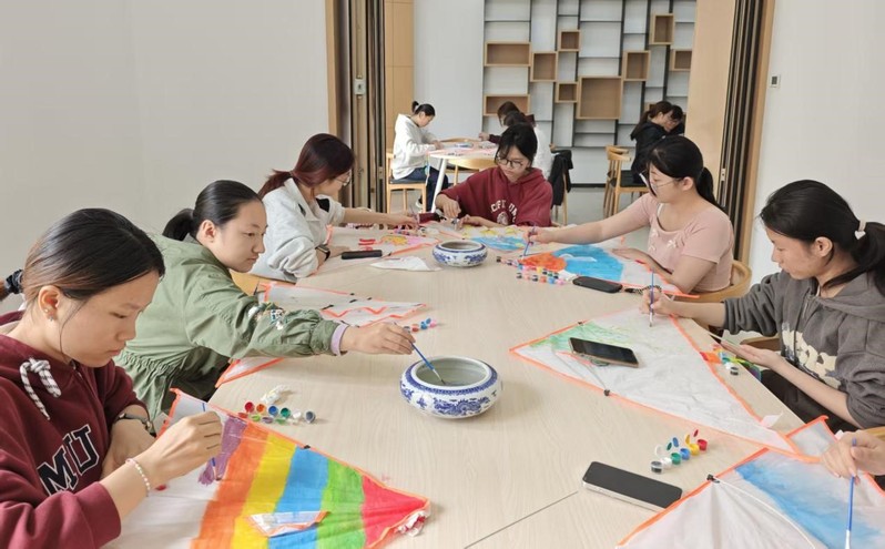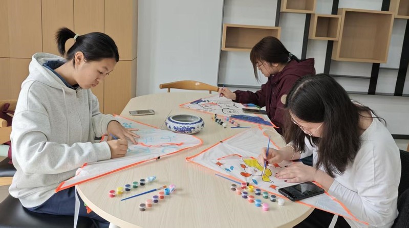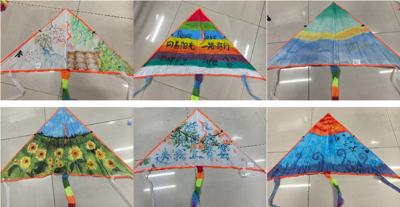 画笔起落间,古韵屋檐与摇曳柳枝交织出一幅田园春景,简约多彩的色块铺展出盎然春意……还有同学在风筝上题写心仪的句子,让文字与画面相映成趣。春意与书香跃然“鸢”上,每一只风筝都成为独一无二的“书中世界”,承载着大家的创意与热爱。
