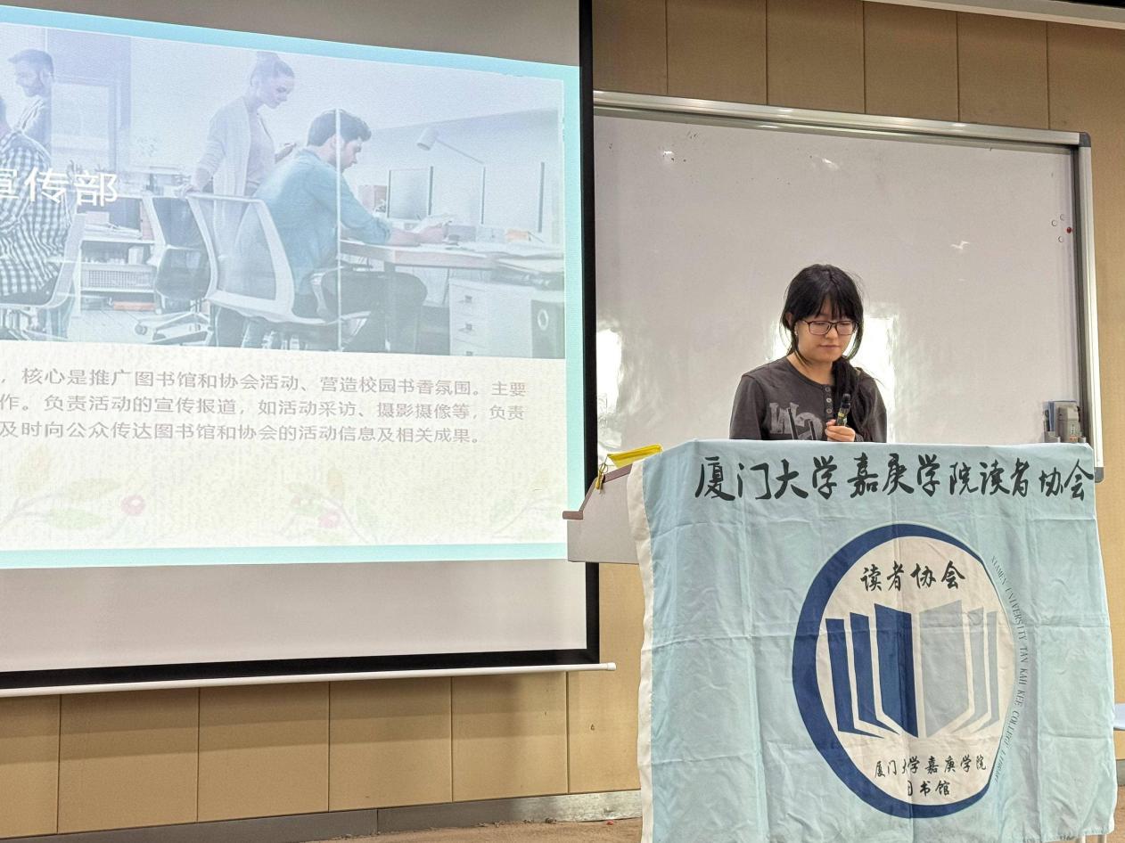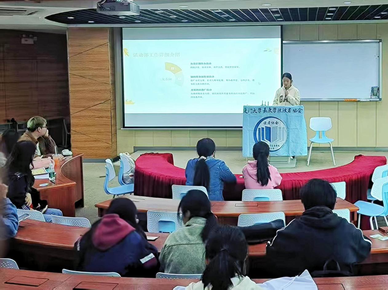 以书为媒传薪火,以文会友启新程。11月19日中午,厦门大学嘉庚学院2025届图书馆读者协会全员大会在经管301室正式启幕。指导老师图书馆读者服务部林雅、吴瑞李与读者协会2024届理事、受表彰代表及2025届全体新成员齐聚现场,共同见证这一薪火相传的重要时刻。