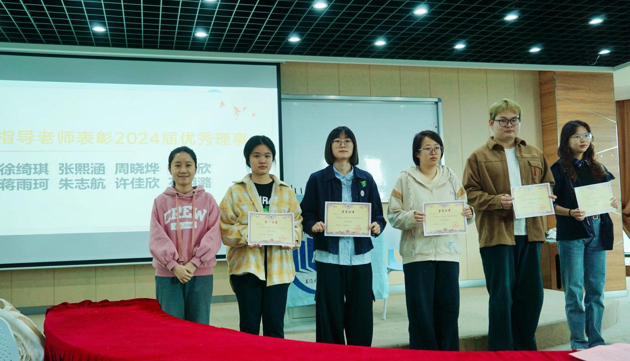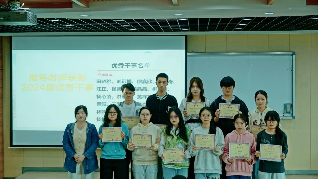 为表彰先进、传承奉献精神,大会特别设置了荣誉表彰环节。吴瑞李老师为2024届理事颁发荣誉聘书,感谢他们一年来在协会管理、活动组织中的辛勤付出;林雅、吴瑞李两位指导老师共同为“2024-2025学年优秀理事”“优秀干事”获得者颁发荣誉证书,鲜红的证书与灿烂的笑容相映,现场掌声持续不断,既是对过往成绩的肯定,更是对未来发展的激励。
